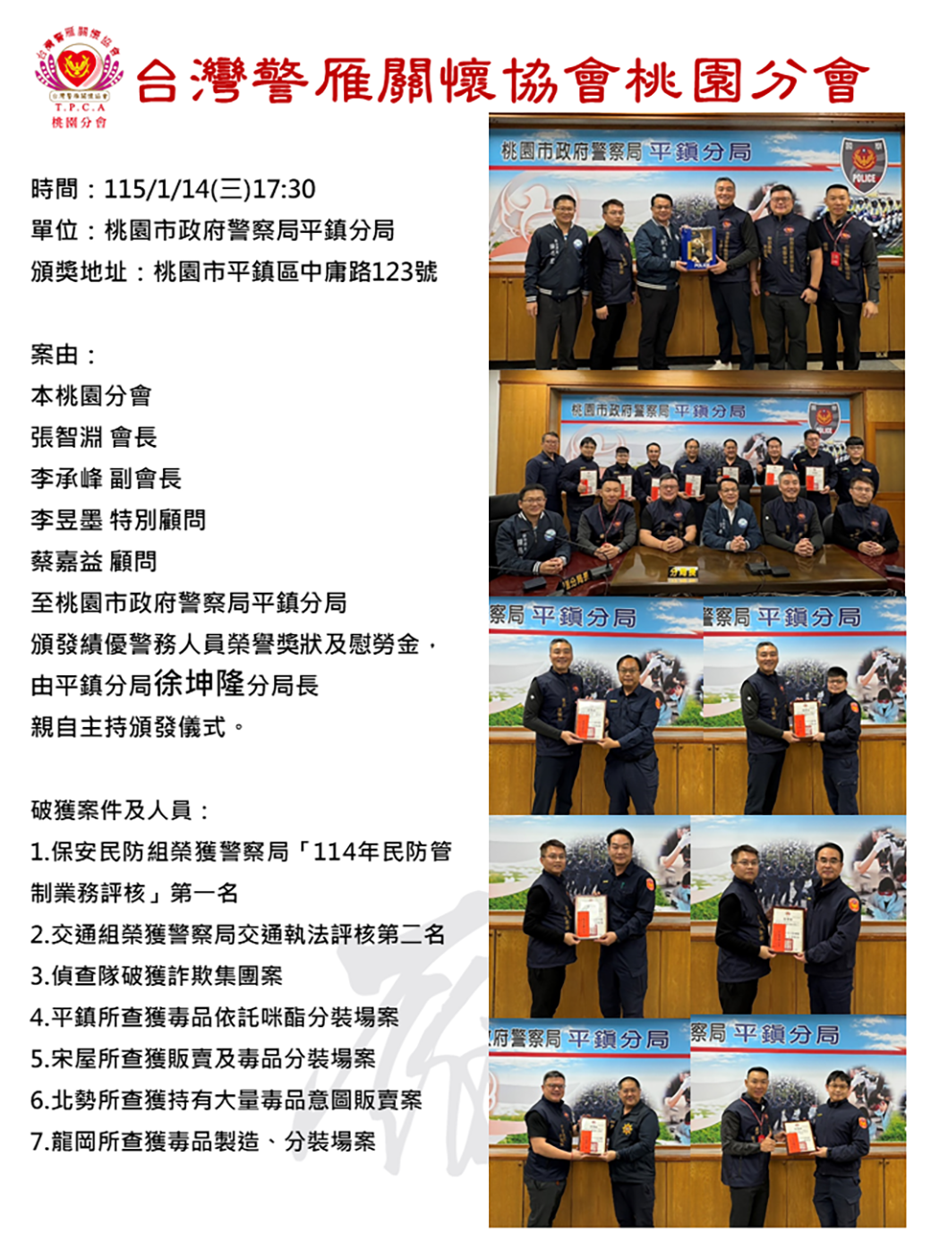 單位:桃園市政府警察局平鎮分局