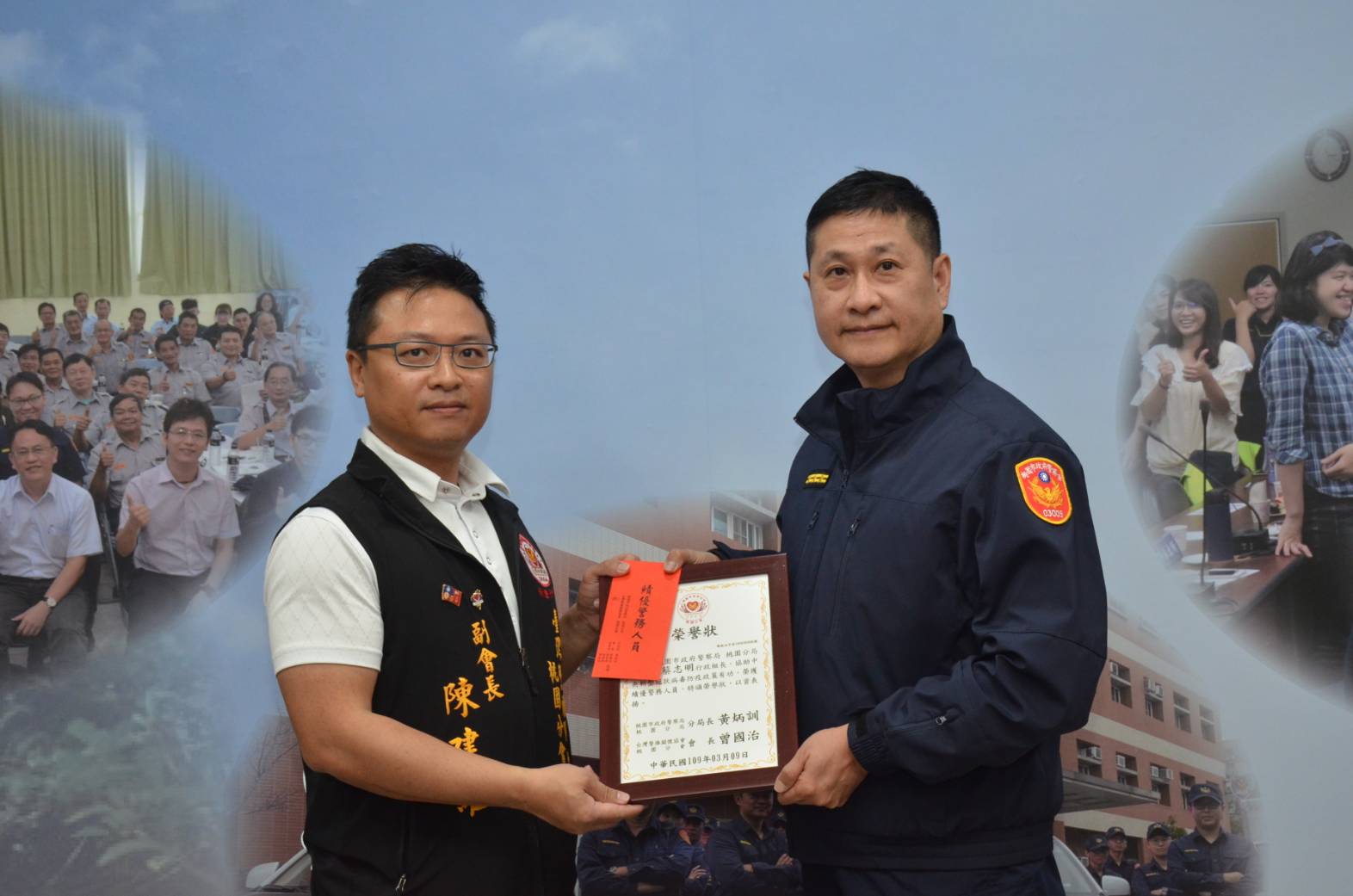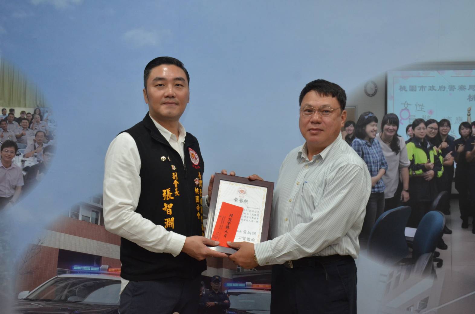 至桃園市政府警察局桃園分局,頒發績優警務人員榮譽獎狀及慰勞金,由桃園分局黃炳訓分局長親自主持頒發儀式。